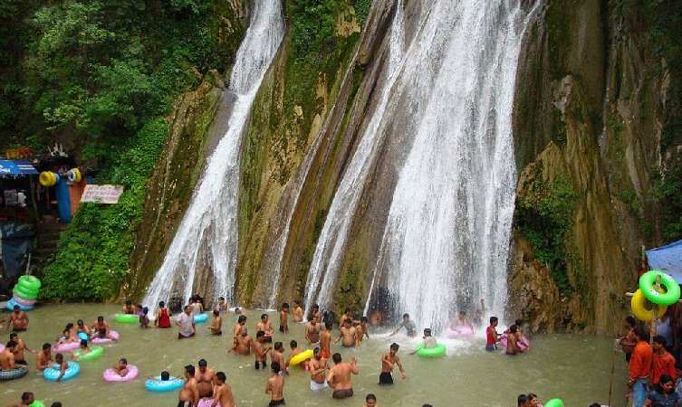 Kempty Falls, nestled in Uttarakhand's lush hills, cascades gracefully amidst verdant forests, offering serene tranquility. Its crystal-clear waters and picturesque surroundings make it a cherished destination for nature lovers.